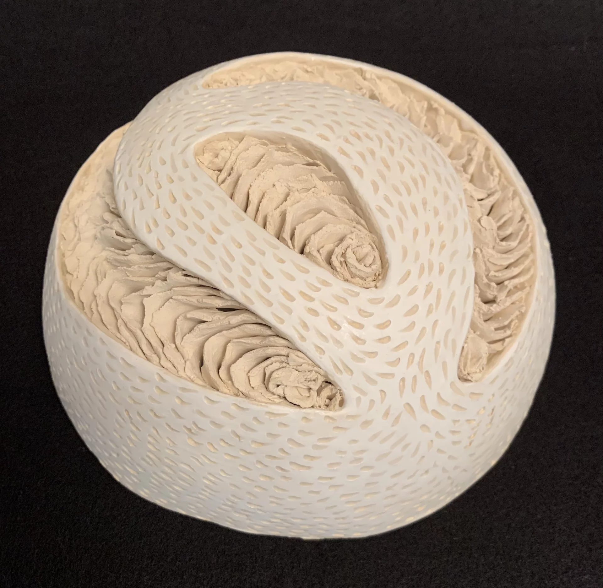 Clay Sculpture in black & white clay structure