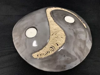 Candle holder with glaze with Clay Structure
